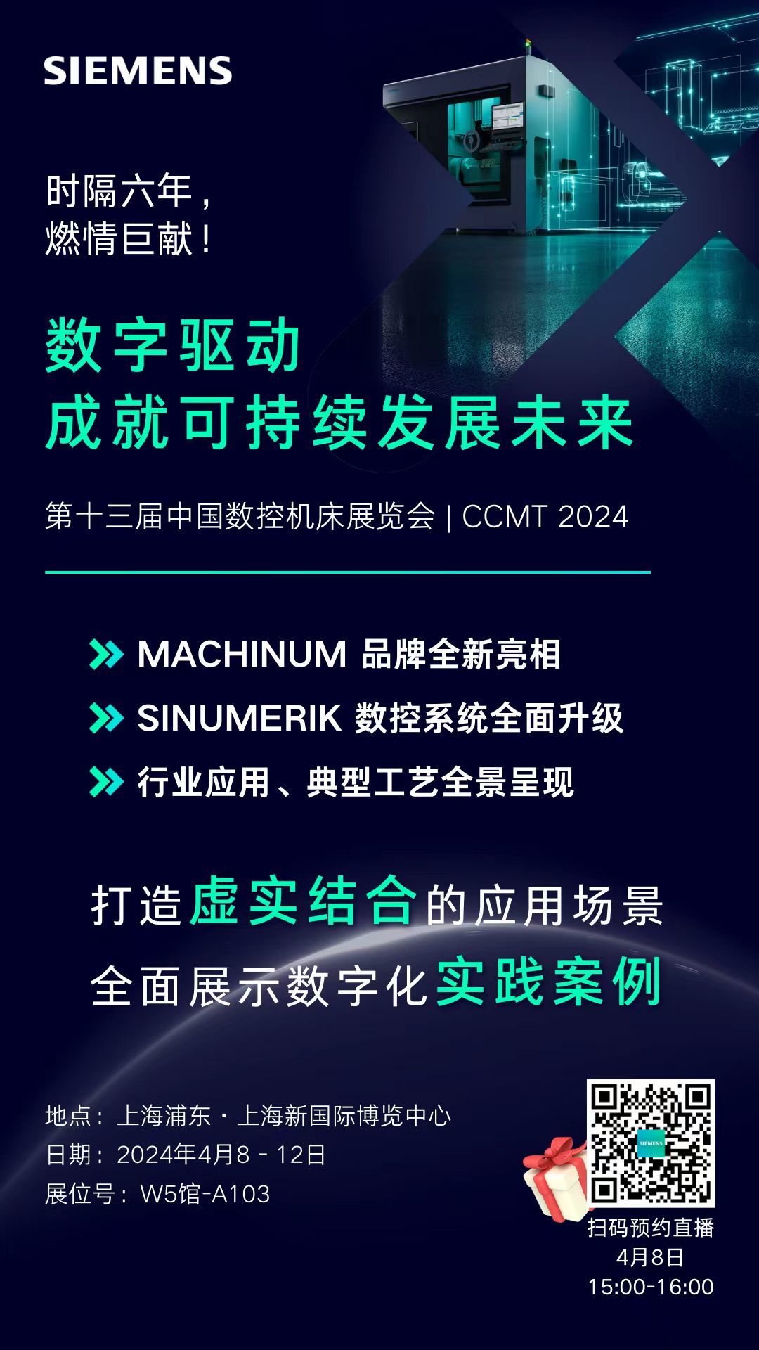 時隔六年 ,燃情巨獻!第十三屆中國數(shù)控機床展覽會(CCMT 2024)西門子與您相約上海